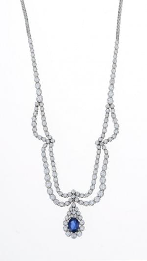 63. Collier stylisé à décor de guirlandes serties de diamants taille...