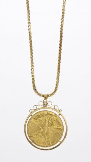 66. Pendentif représentant une médaille mexicaine retenu par une cha...