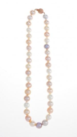 81. Collier de perles multicolores pastel et son fermoir boule diama...