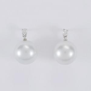 82. Paire de clous d'oreilles sertis de perles de mer du sud et d'un...