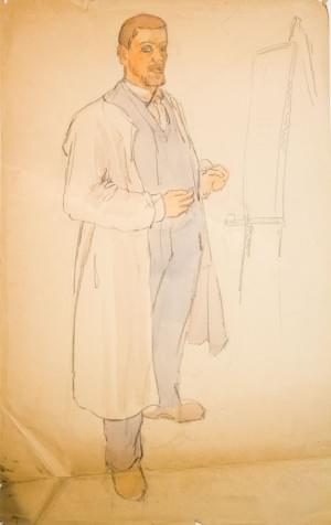 Autoportrait à la blouse, aquarelle sur papier, 53x32 cm