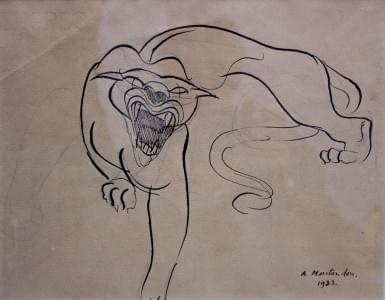 Tigre, encre sur papier signé et daté 1933, 23 x 29 cm