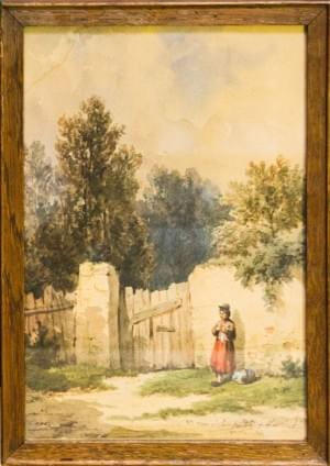 3453. Jeunes filles au bord de la rivière et L'attente au portail