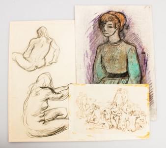 Ensemble de 7 dessins nus et portraits, début XXe s