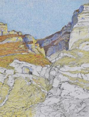 Vallée, mine de plomb et couleur sur papier signée, 25 x 19 cm