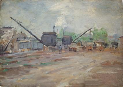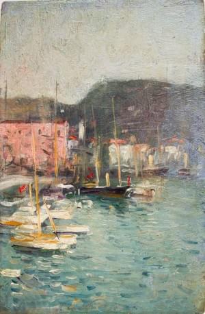 Port, huile sur panneau, 24x16 cm (recto verso)