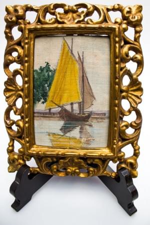 Voilier sur le lac, huile sur toile, 13x9 cm