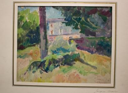 La maison au fond du jardin, huile sur papier, cachet de l'ateli...