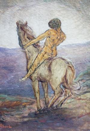 Jeune cavalier nu, huile sur toile signée Vibert , 46 x 32 cm