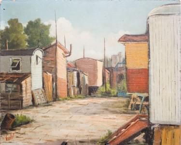 La Fusterie, huile sur panneau signée, 60 x 57 cm