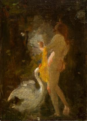 Leda et le Cygne, huile sur panneau, non signé, 18x13 cm