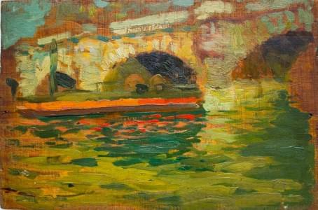 Le pont, huile sur panneau, 16x24 cm (recto verso)