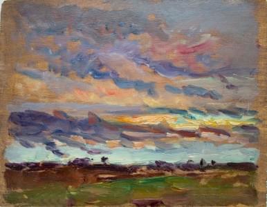 Nuages au crépuscule, huile sur panneau, étude, 14x18 cm