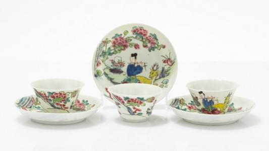 Porcelaine à décor de personnages occidentaux, Chine, XVIIIe s,...