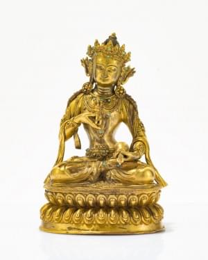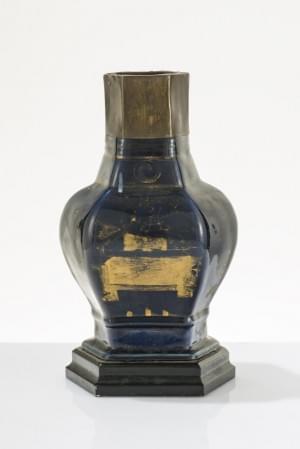 Porcelaine émaillée à décor or de pagodes et caligraphies, bronz...