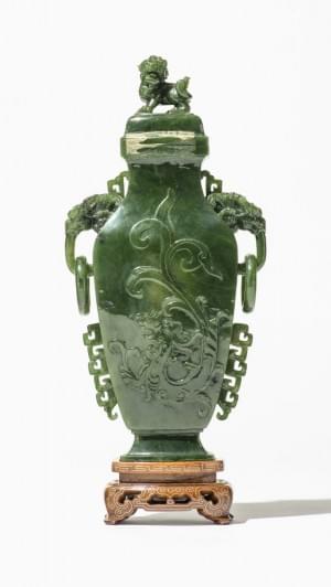 Jaspe sculpté à décor d'un dragon gravé, bouchon surmonté d'un d...