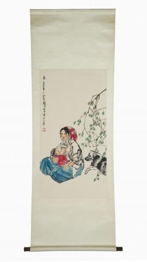 Encre sur papier monté en rouleau, signée, Chine, 178x63 cm