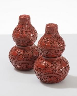 Laque rouge de cinabre sculptée de feuillages, Chine, Xxe s, H 2...