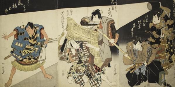 Acteurs de kabuki, deux estampes en couleurs, Japon, époque Edo...