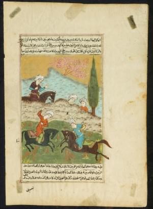 Paire de miniatures à motif de scènes de chasse, gouache sur pap...