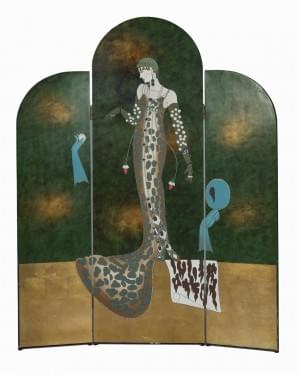 Trois panneaux à décor d'une jeune femme d'un côté et de plantes...
