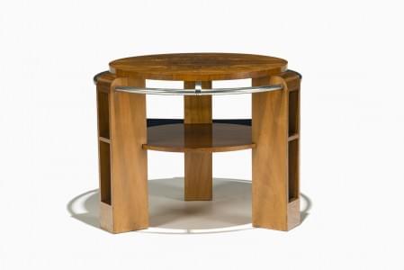 Placage de noyer et tube de métal chromé, D 81 cm, H 62 cm