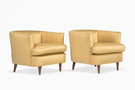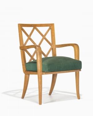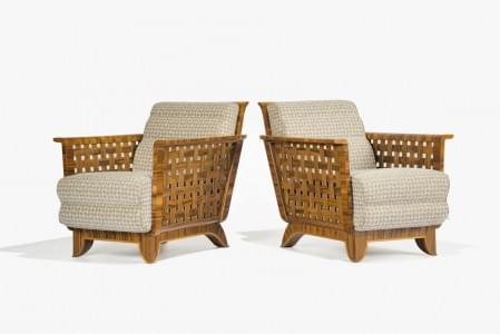 Paire de fauteuils club, accotoirs en treillis, palissandre, mou...