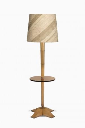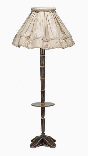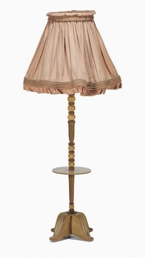 Lampe de parquet à quatre pieds, fût bagué à plateau central, pa...