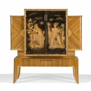 Meuble radio, bois de placage à décor marqueté d'Orphée et Euryd...