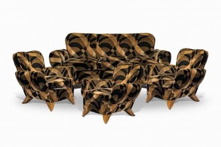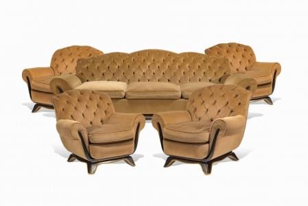 Salon comprenant un canapé et trois fauteuils, bois fruitier, ve...