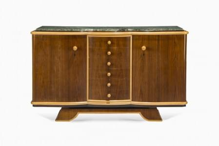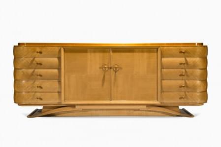 Enfilade à façade arbalète, dix tiroirs, deux vantaux, placage d...