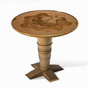 Guéridon rond, plateau de verre églomisé à décor du Capricorne,...