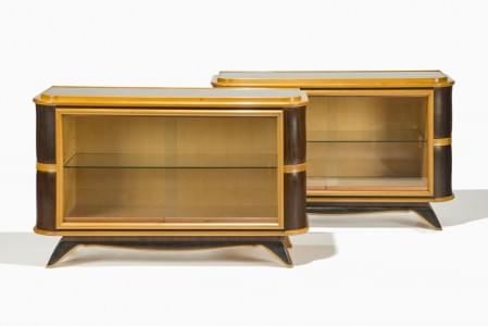 Paire de petits buffets vitrés, palissandre et bois clair, 87x14...