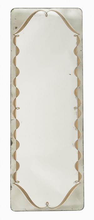Miroir rectangulaire, verre gravé à décor de vagues, 180x63 cm