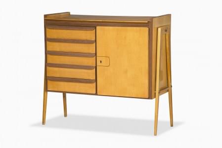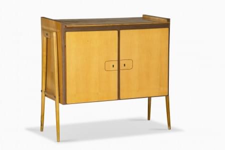 Deux portes, piètement latéral en compas, placage d'érable et la...