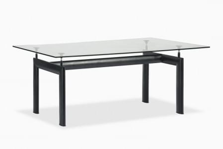 Table rectangulaire LC6, acier laqué noir et verre, 74x201x100 c...