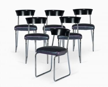 Six chaises Cantilever, modèle B257, métal chromé, bois noirci,...