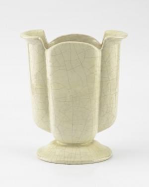 Vase sur pied, panse à gouttières latérales, faïence recouverte...