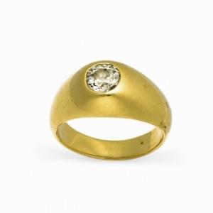 427. Bague chevalière sertie d'un diamant taille ancienne