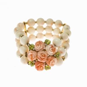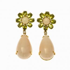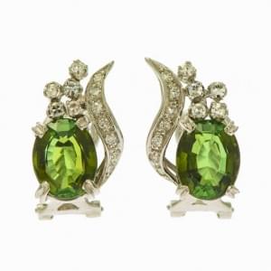 450. Paire de clips d'oreilles ovales sertis de corail blanc et de di...