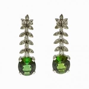 421. Paire de pendants d'oreilles Art Déco sertis de diamants et rete...