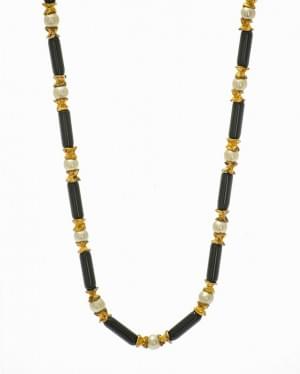 496. Gilbert Albert, sautoir en onyx ponctué de perles et d'éléments...