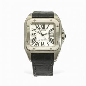 Cadran argenté, chiffres romains noirs, acier, 38x38 mm, dans so...