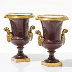 Porcelaine monochrome rouge, doré mat et brillant, anses