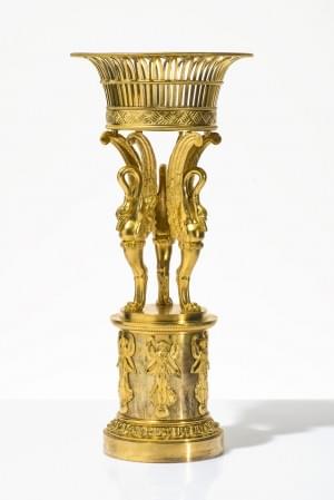 Formé d'une corbeille sur un triple pied col de cygne terminé en...