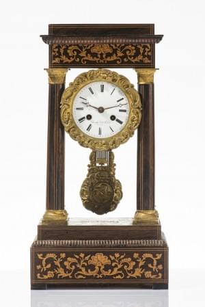 Palissandre, filets de bois clair, bronze doré, cadran émaillé b...