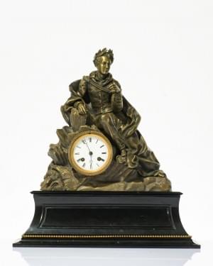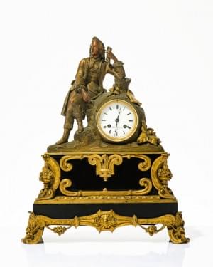 Bronze à patine brune, bronze doré et marbre noir, cadran émaill...