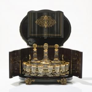 Placage de bois noirci marqueterie de laiton, bronze doré, avec...