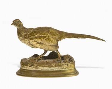 Faisan, bronze à patine dorée, signé, H 11 cm