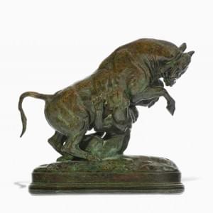 Taureau attaqué par un tigre, bronze à patine verte, signé, H 23...